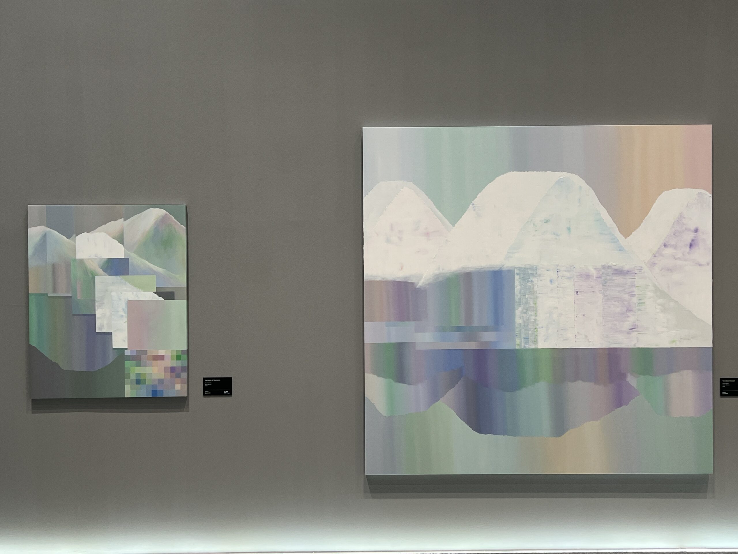 전시는 다층적인 시선으로 구성되어 있다. 회화 연작 〈Toned Landscape〉는 북유럽에서 채집한 시각적 체험을 바탕으로 구성된 풍경으로, 오로라와 빙하의 이미지를 통해 자연의 경이로움을 감각적으로 담아낸다. 빛의 흐름을 색의 레이어로 해석한 〈Variation of Moments〉 시리즈에서는 시간의 지층을 따라 미묘하게 변화하는 감정과 공간의 파동이 스며든다. 특정 시각의 기억을 시각화한 〈Variation of 7pm〉 연작은 하루의 한