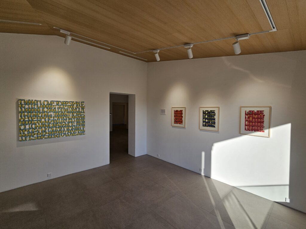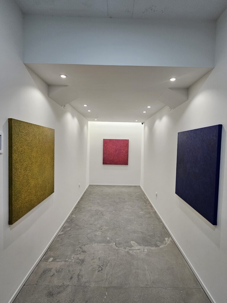 반복과 중첩된 프레임이 물리적 파장을 형상화한다. 고정된 틀을 벗어나 유동적인 색상과 명암의 흐름을 통해 공간과 감각을 연결하는 역할을 한다.