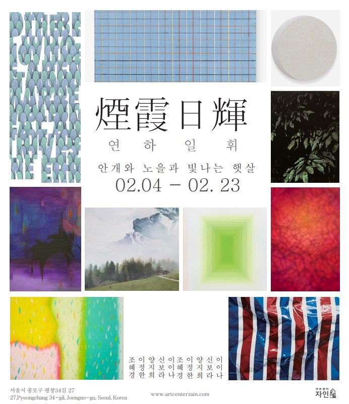서울 종로구 평창동 아트센터 자인에서 10인의 작가가 모여 전시 《煙霞日輝 연하일휘》를 개최한다. 연하일휘(煙霞日輝)는 안개와 노을, 그리고 햇빛이 어우러져 빚어내는 빛의 풍경을 의미한다. 이번 전시는 다양한 매체를 통해 빛과 어둠, 존재와 부재, 시간과 공간의 경계를 탐색하며, 그 안에서 새롭게 피어나는 감각적 경험을 제시한다.