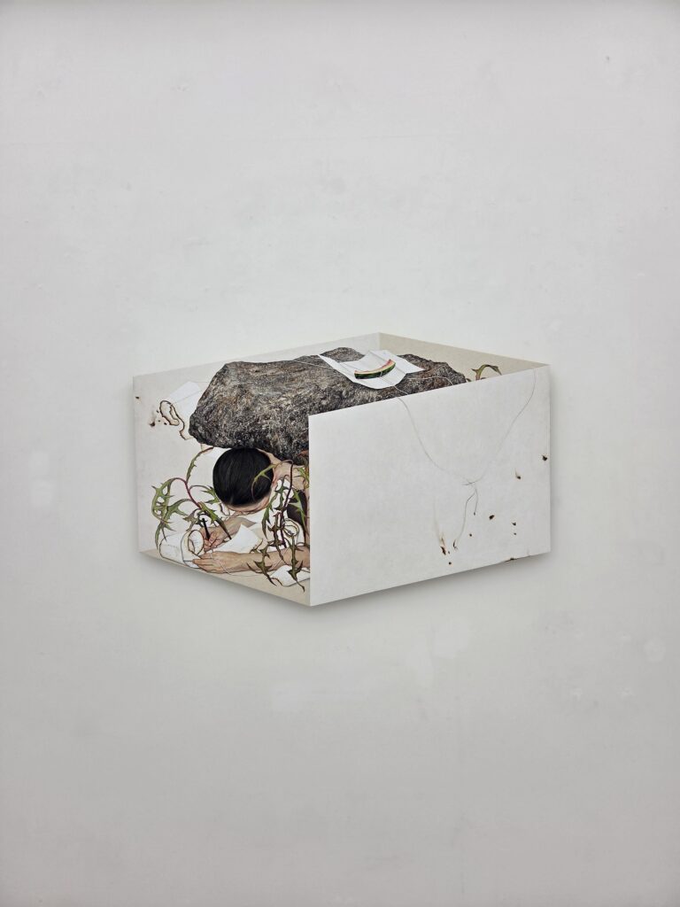 흐르는 시간을 붙잡아 두려는 듯 밭 밑에 웅덩이가 고였다. 이를 덮을 뚜껑이 없어, 버려진 집의 지붕이라도 가져다가 쓸까, 하고 생각하는 동안은 아무리 발버둥 쳐도 임시방편에서 벗어날 수 없다. 순간 입체적으로 좁은 숨이 다가온다.