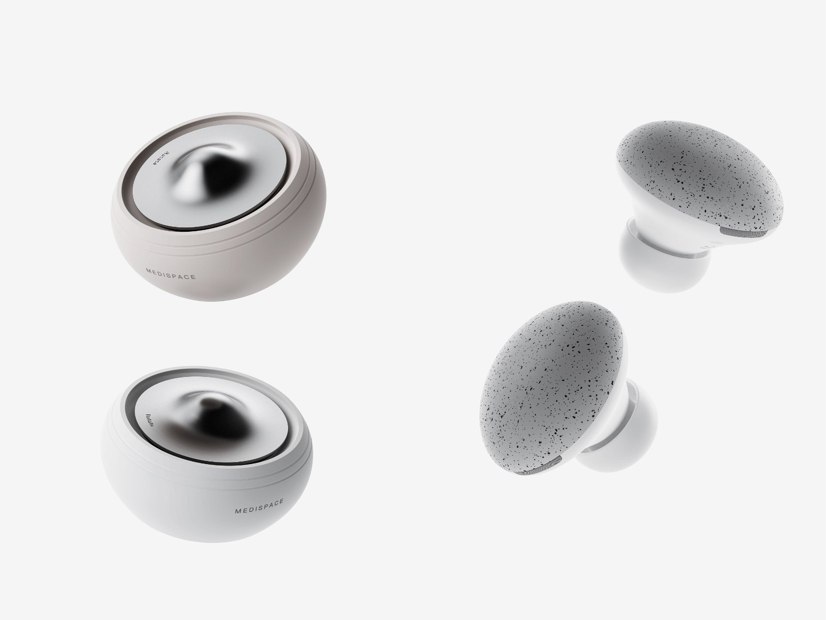 디바이스는 10가지 이상의 소리를 시뮬레이션할 수 있습니다. 이를 통해 사용자는 메디스페이스의 상단 금속 디스크를 터치하고 탭할 때 실제로 티베트 싱잉볼을 사용하는 듯한 느낌을 받게 됩니다. 기계적으로는 이어버드를 위한 충전 케이스 기능을 합니다.